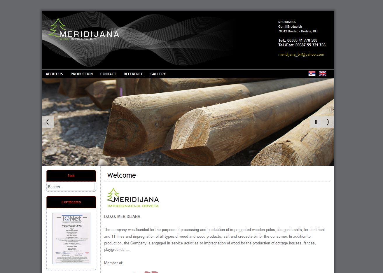 CMS stran prirejena za tablice in pametne telefone je v srbskem jeziku. Dizajn strani je od podjetja Studio18. Letnik: 2013 meridijana.com