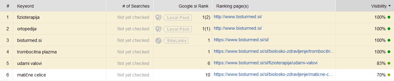 Trenutno stanje pozicije v google iskalniku za ključne besede na datum 17.8.2019 je: