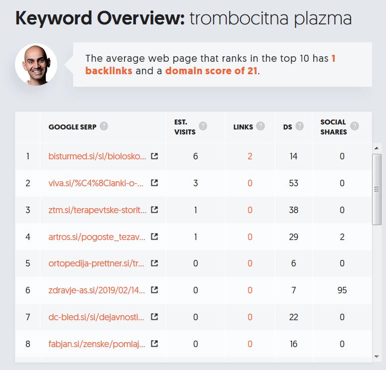 Na izbrano ključno besedo trombocitna plazma je bisturmed.si na prvem mestu v google , tudi po splošni oceni svetovno znanega SEO mojstra: